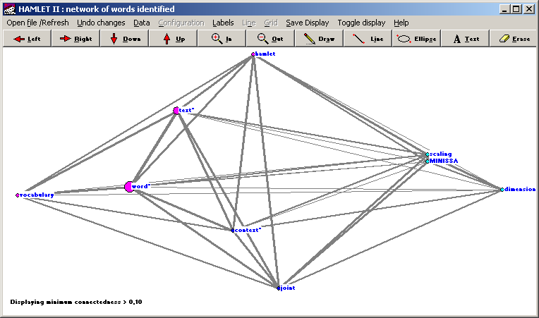 Click on the display using the left mouse button to toggle the display through three degrees of connectedness (successive line thicknesses represent the values : 0.0 < c < 0.33; 0.33 < c < 0.66; and 0.66 < c <= 1.0).